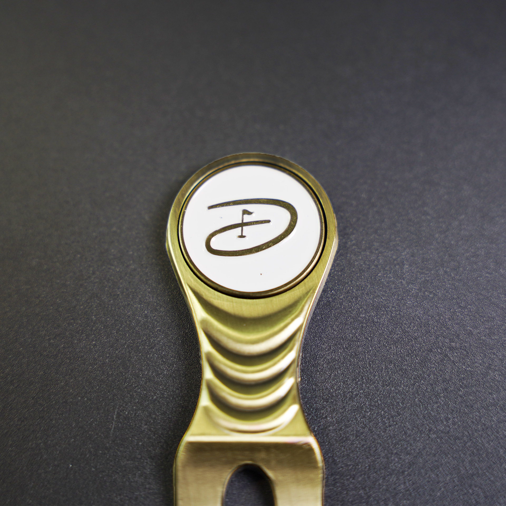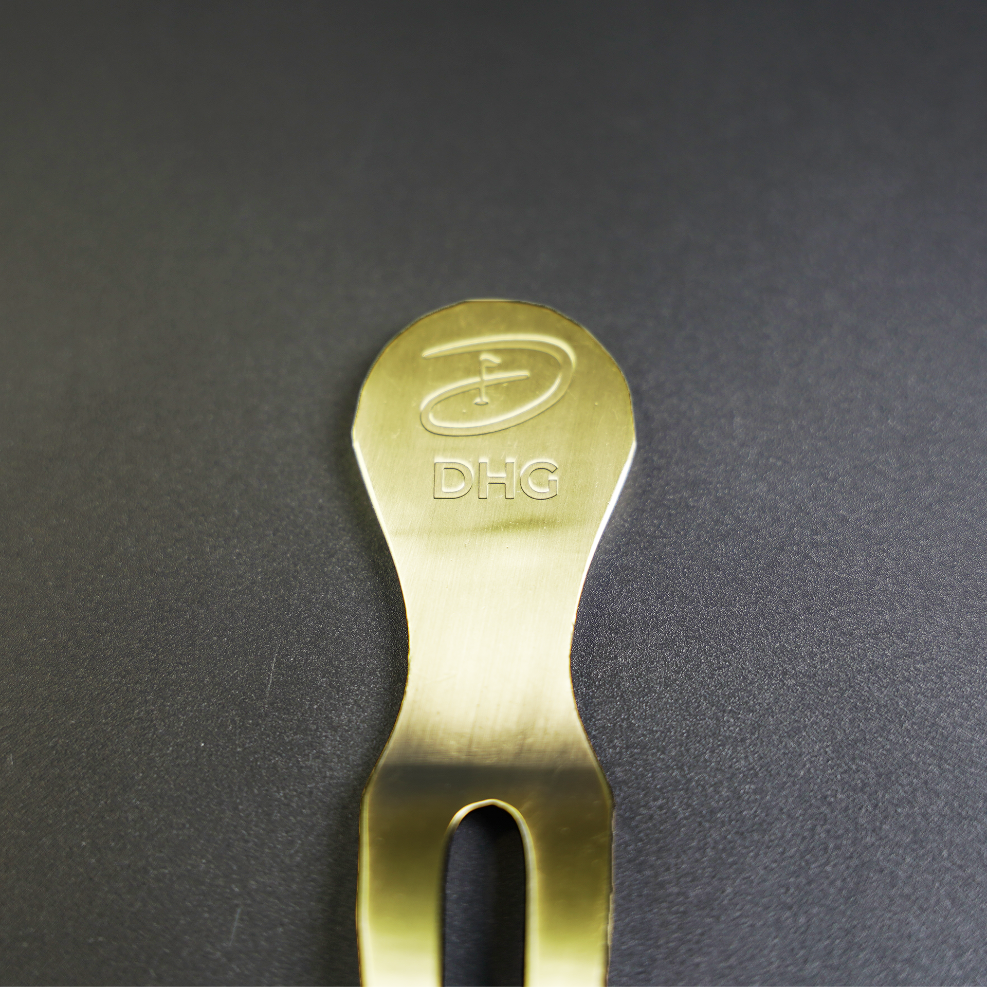 Luxury, ergonomic pitch mark repairer. Classy gold in colour.